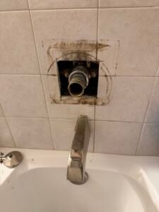 - Removing the faulty bathtub faucet, ensuring no hidden leaks in the plumbing system.